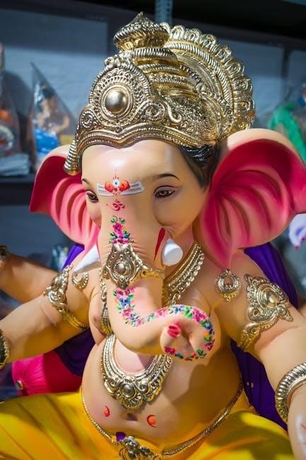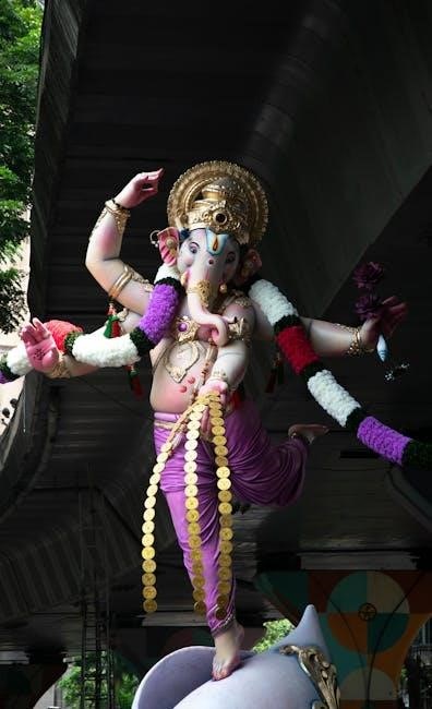 Distressed, Parvati requested Shiva to revive their son, leading to the replacement of the head with that of an elephant. This narrative, readily available in the PDF version, highlights themes of divine will, overcoming obstacles, and the power of maternal love, solidifying Ganesha’s unique origin story.